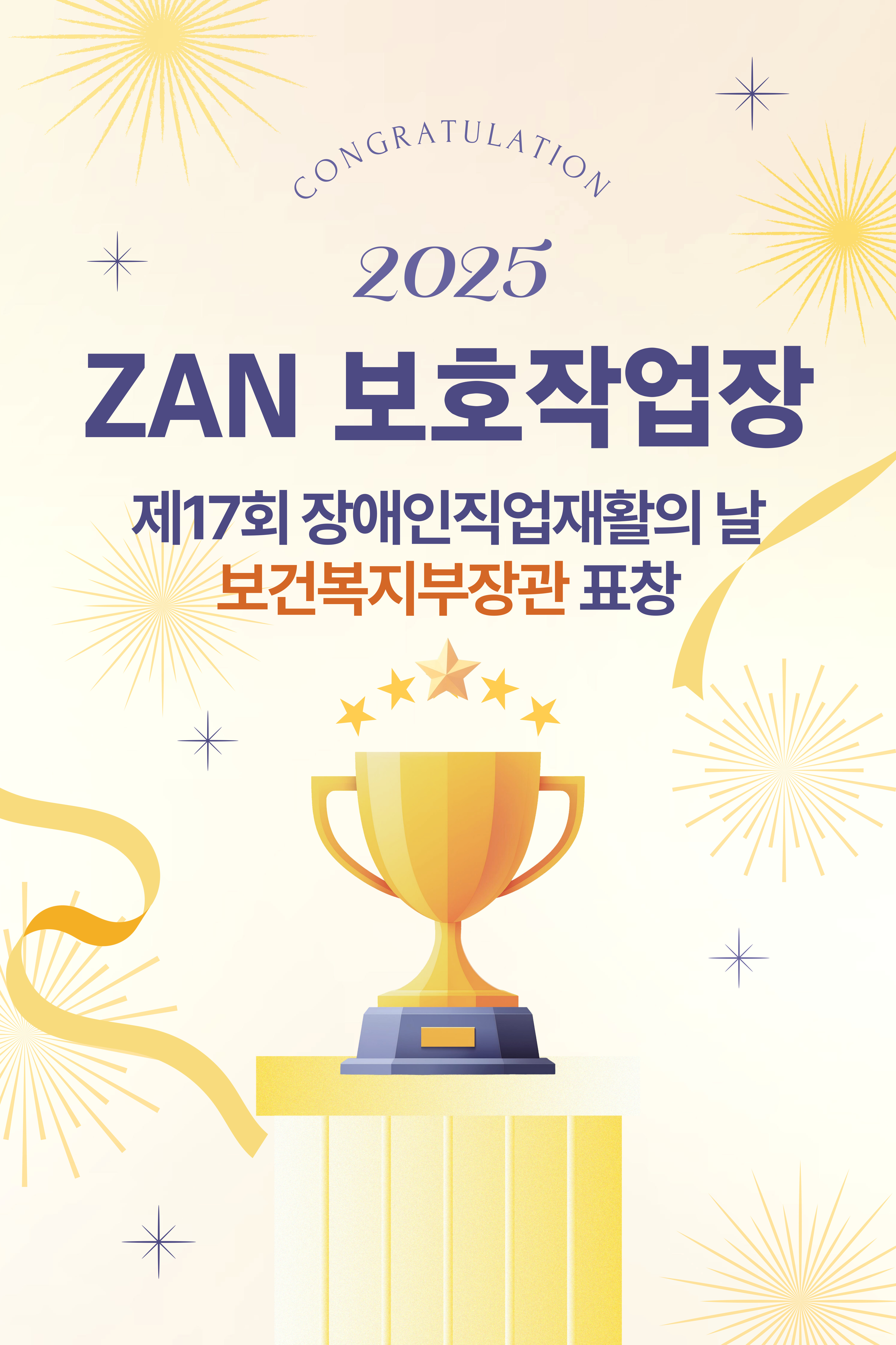 ZAN 보호작업장의 보건복지부장관 표창을 진심으로 축하드립니다.