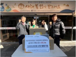 [충북일보] KB국민은행은 최근 설 명절을 맞아 충청북도장애인종합복지관에 350만원 상당의 사랑나눔 키트 50상자를 전달했다. 전달식에는 KB국민은행 충청7(충주)지역본부 신경환 본부장과 충주지점 김영주 지점장이 참석했다. 이번 2025 설맞이 전통시장